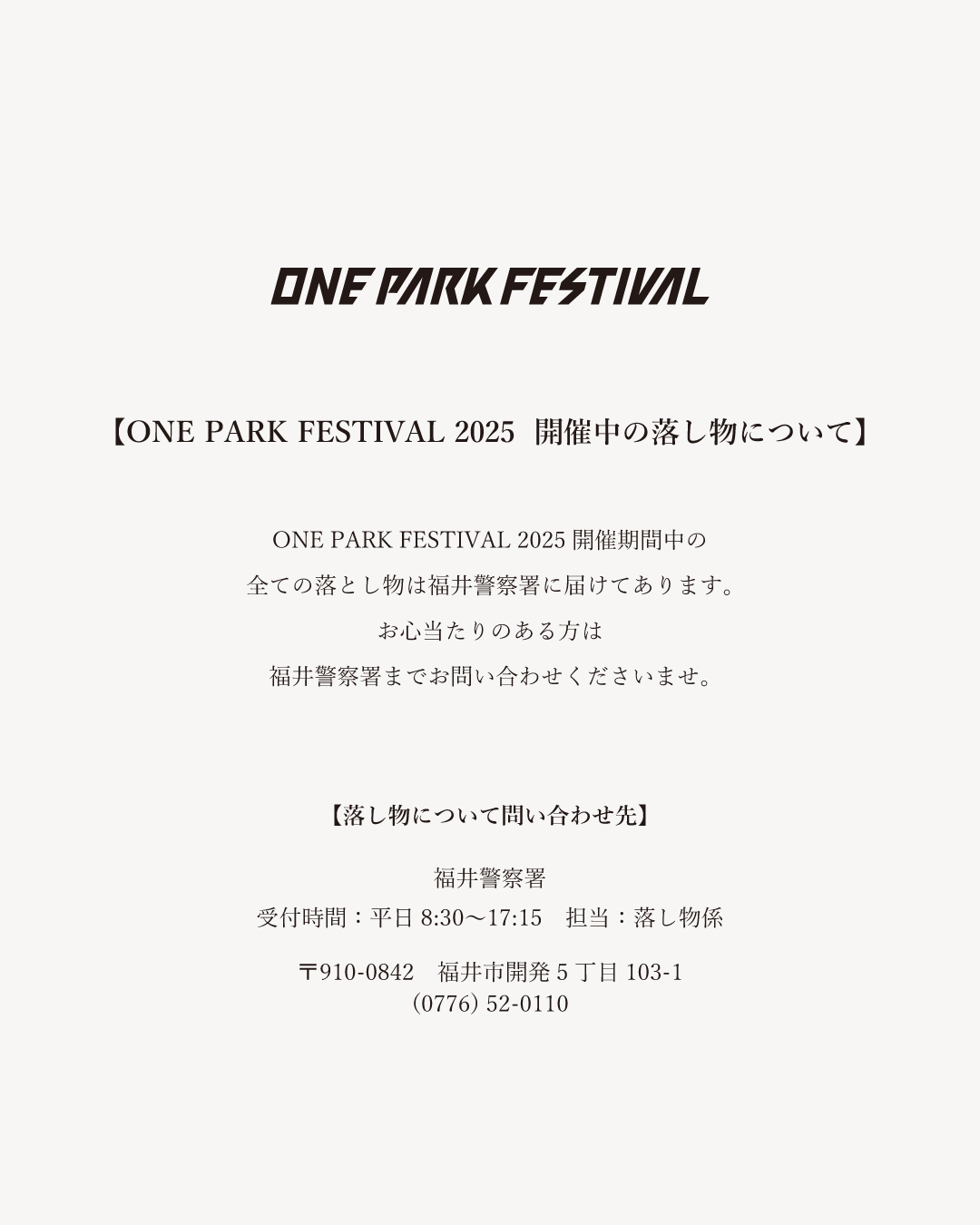 【ONE PARK FESTIVAL 2025 開催中の落し物について】