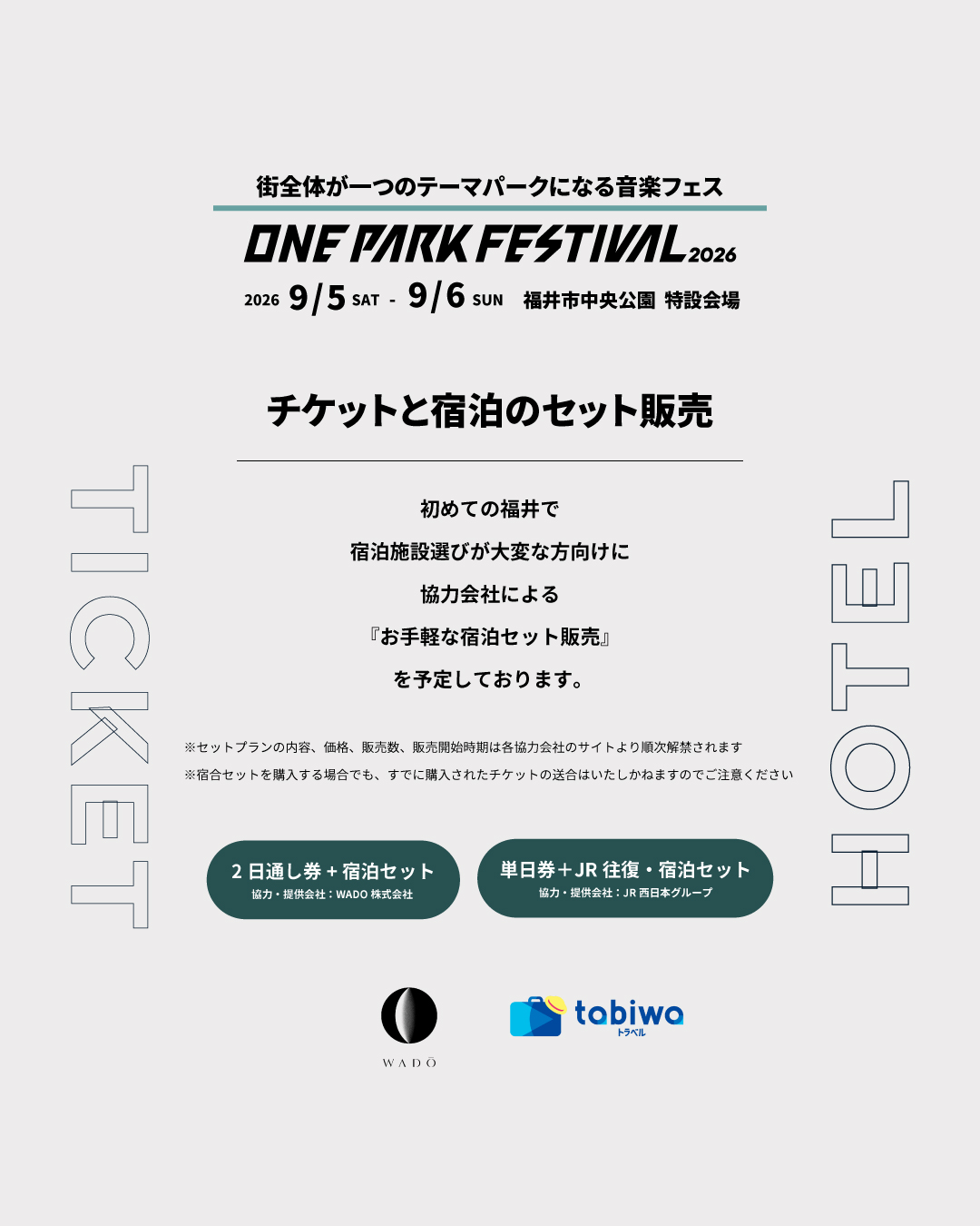 ※宿合セットを購入する場合でも、すでに購入されたチケットの送合はいたしかねますのでご注意ください