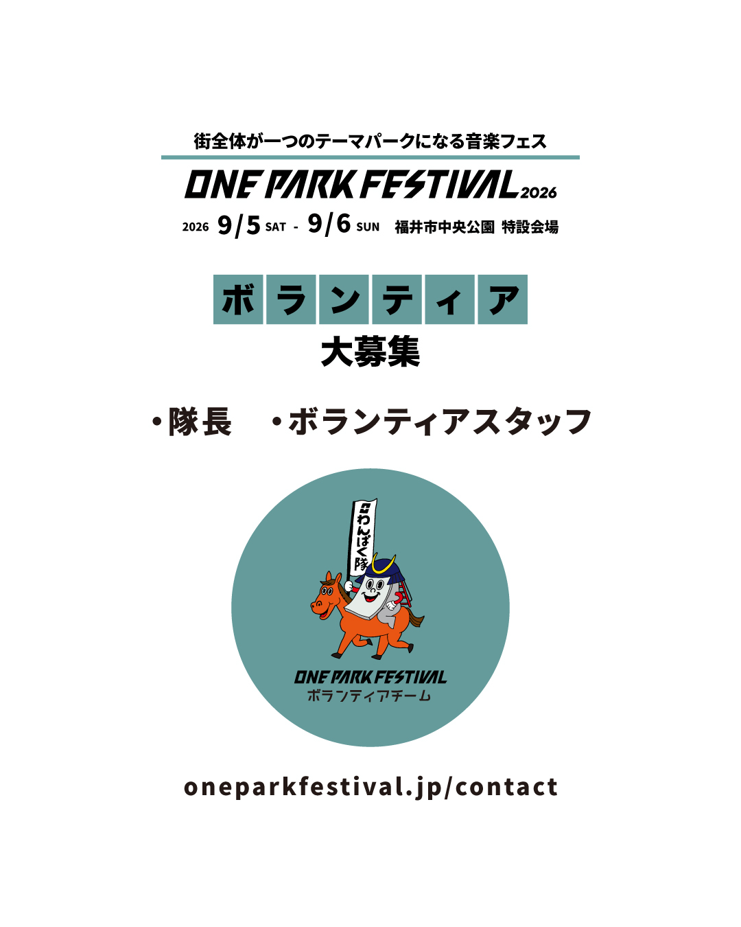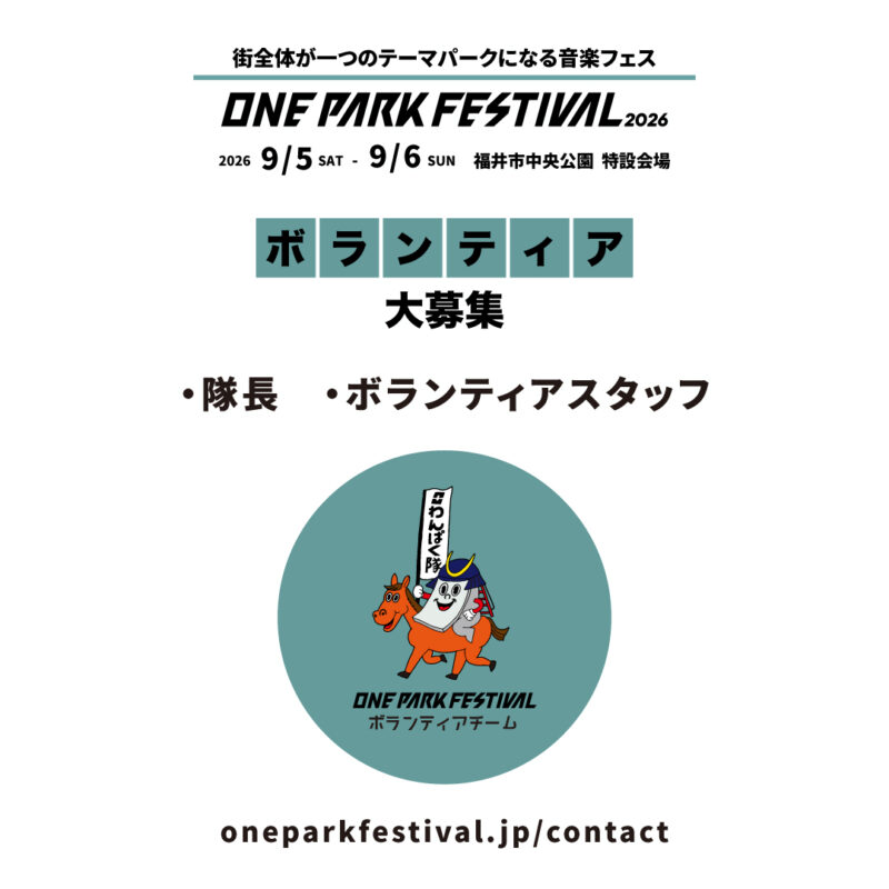 ONE PARK FESTIVAL 2026 のお手伝いをしてくださる ボランティアチーム「わんぱく隊」のスタッフを募集します。
